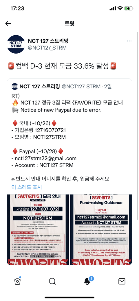 모금안하면 우리 컴백 진짜 힘듦... 1000원씩이라고 하자