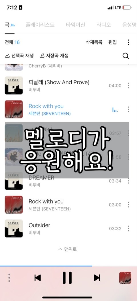응원해용❤️ 당분간 한 시간에 4번씩 들으려고 플리에 넣어뒀습니다ㅎㅎ
