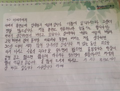오늘도 제 아들이 훈련소에서 쓴 편지 보는데 그냥 눈물만 납니다...감사합니다..