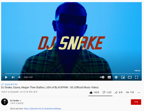 이번에 발표 한 블랙핑크 리사와 DJ Snake, Ozuna, Megan 콜라보 곡 나만 좋나