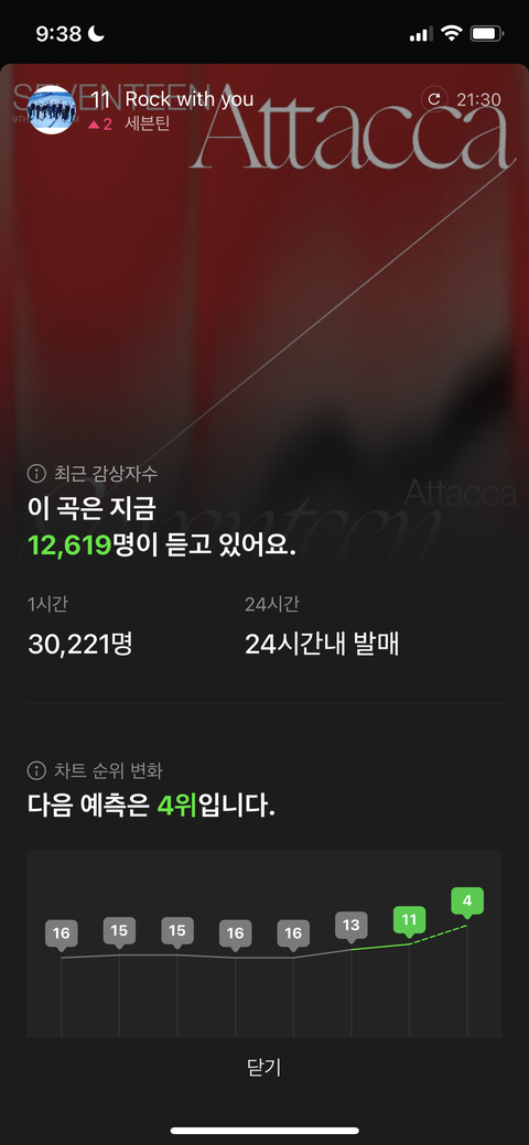 4위다 이대로 쭉 가자 다른 곡들도 20위 안이야