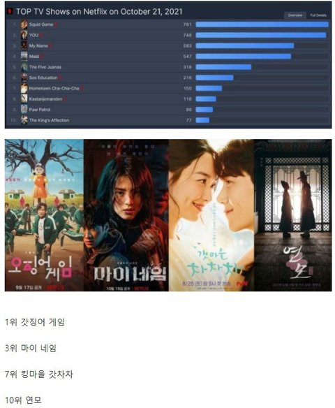 넷플 세계랭킹 TOP 10에 한국드라마 4개
