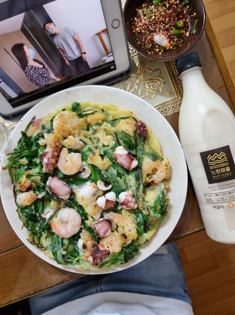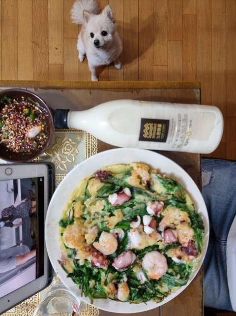비오는 날에는 해물 잔뜩 넣고 부추전에 막걸리