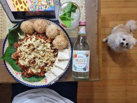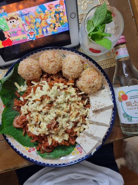 처음으로 만들어본 오돌뼈에 주먹밥