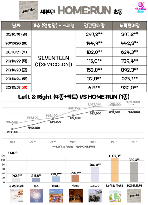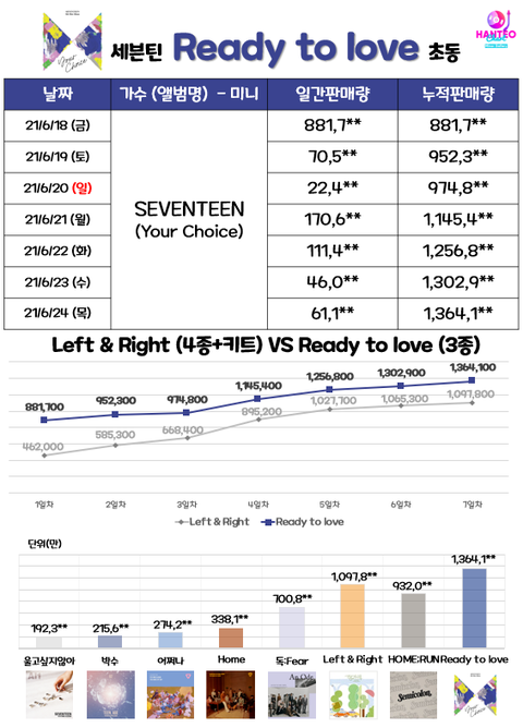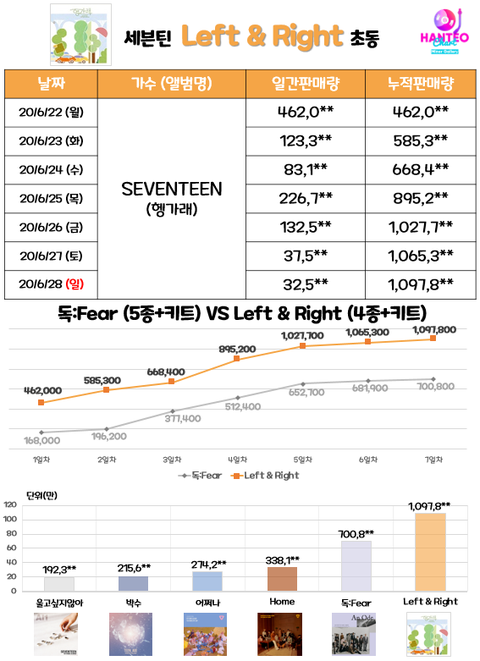 세븐틴 해외팬덤이 국내보다 더 커서 늦게 터짐 이번것도 초동 첫날에 두배 뛴다 보면됨
