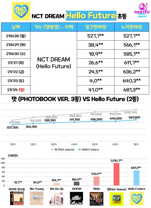 반면 슴가수들은 케타 두배가 거의 첫날이라 드림보다 케타 훨씬 후달린 127이 드림 초동 넘을일은 없고 음원도 세븐틴이 머글픽 노래라 우리 1위는 물건너감