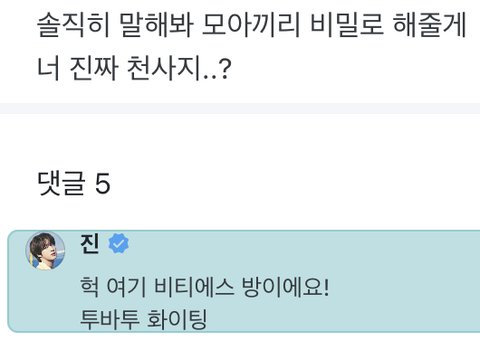 잘못 댓글쓴 모아분 안 민망하게 스윗하게 댓글 남겨준 김석진 ㅠㅠㅠㅠㅠ이래서 내가 너 좋아한다