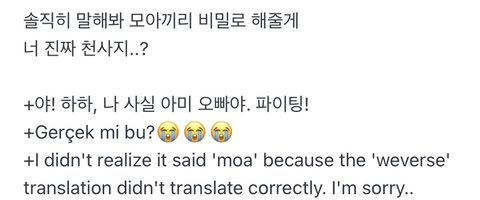 모아가 방탄 위버스에 잘못 남겻는데ㅋㅋ
