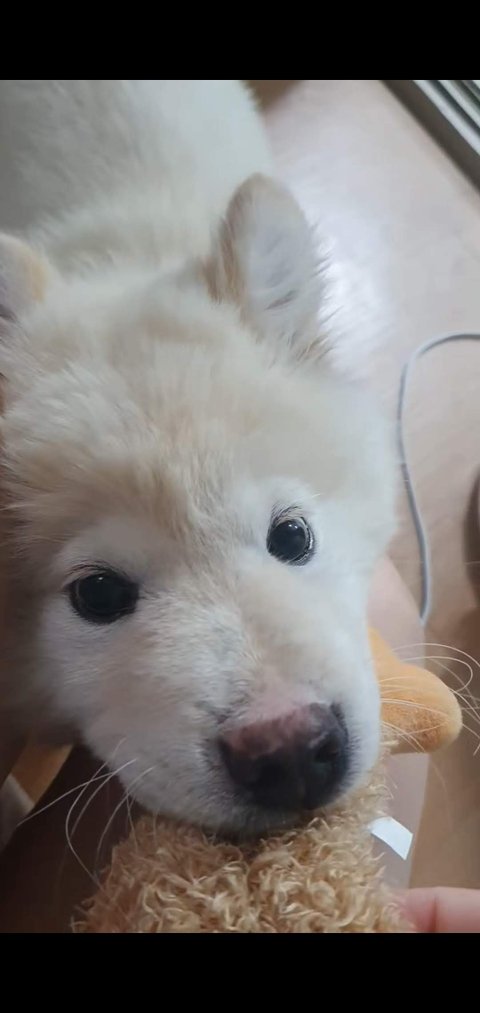 안락사직전 봉사자님 통해 쫒아가서 데려오던 세번째 애기. 차에 태워오는데 겁먹고 덜덜 떨길래 계속 안고 있어도 저 겁먹은 눈좀봐. 지금은 세녀석 다 바싹 말랐던 몸이 뚱땡이가 되었지만 너무 사랑스러워.♡♡