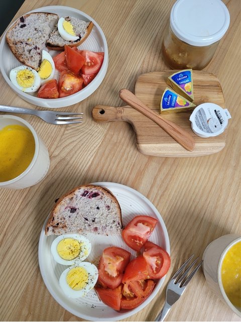아침에 계란을 먹으면 건강해지는 느낌이예요~ 빵에 많이 넣어먹어서 이번엔 따로 잘라서 준비해봤어요~ 야채도 잘먹게 되는것 같아요.