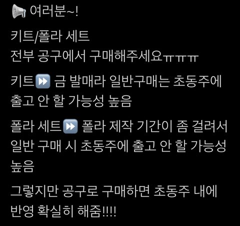 폴라이벤트세트는 제작기간이 좀 걸려서 초동주에 송장안찍힐 수 있대