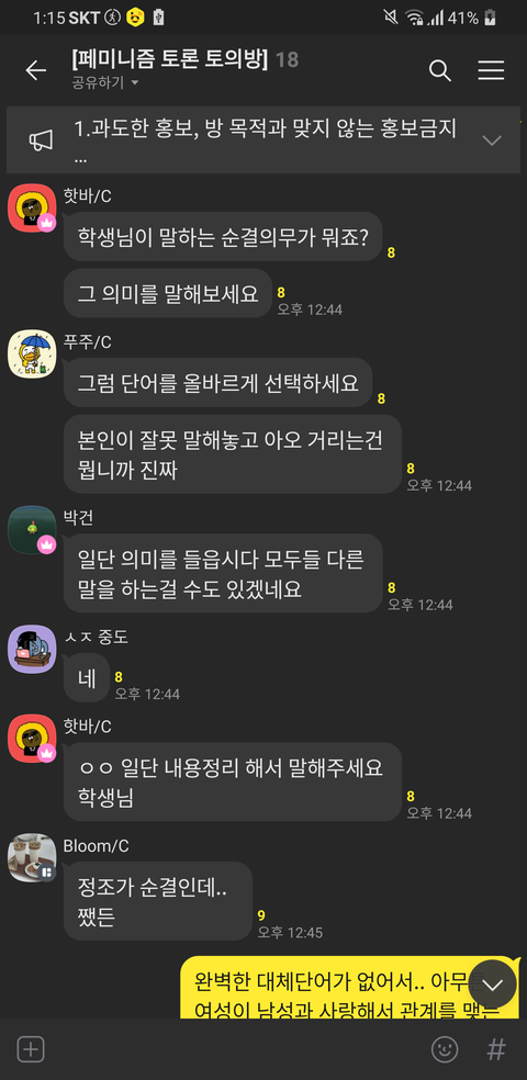 안녕하세요? 곧 수능을 보게 되는 고3 학생입니다. 좀 쉬려고 커뮤를 돌아다니고 있었는데, 설거지론을 알게 된 이후로 공부가 손에 안잡히더군요. 토론과 토의로 복잡한 심정을 풀어보고 싶어서 오픈채팅방에서 제 의견을 말해 봤고, 톡에도 의견을 묻고 싶어서 왔습니다.