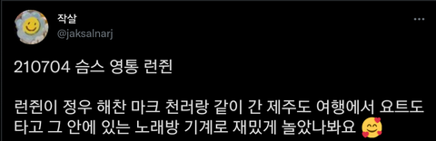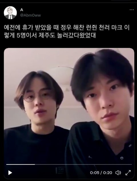예전에 휴가 받았을 때 정우 해찬 런쥔 천러 마크 제주도 놀러갔다왔어