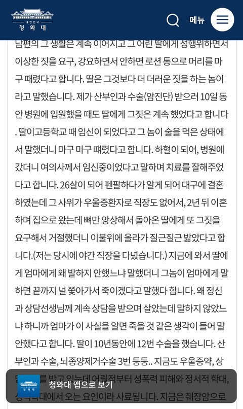 청원/친부 성폭력/딸 암 3개월/공소시효 지남