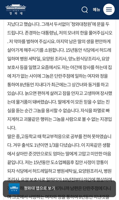 청원게시판 보다가 알게 된 케이스인데 너무 상황이 안좋아서 올립니다.