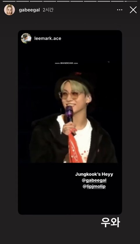 정국이 콘서트에서 헤~~이~~ 따라하더니 결국 가비님 인스타 스토리에 박제됨ㅋㅋㅋㅋㅋㅋㅋ