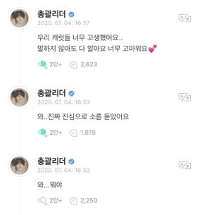 꼭 1위 시켜주자 작년 애들 반응 보니까 눈물나 근데 이렇게까지 애들이 기뻐하는 이유 뭐야? 이번에도 그렇게 만들어주고 싶다 진짜로