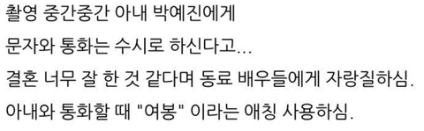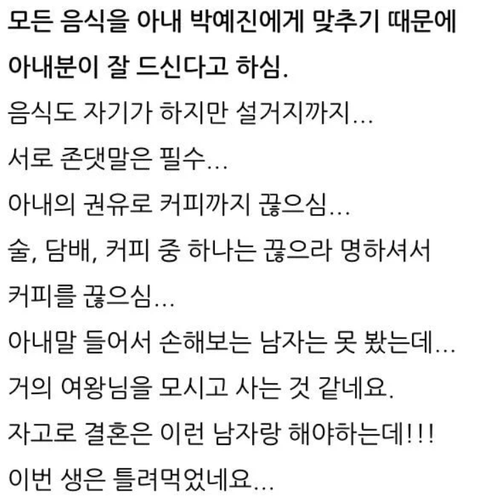 아내 박예진이 술, 담배, 커피 중 하나는 끊으라 명하셔서 커피를 끊으심ㅋㅋㅋㅋㅋ