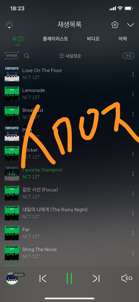 얘들아 재생목록에 17곡만 있는지 확인해‼️