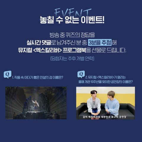 링크 : https://events.interpark.com/exhibition?exhibitionCode=210412002&utm_medium=content&utm_source=twitter&utm_campaign=ticket_20211025_xcaliber_content&utm_content=awareness_10