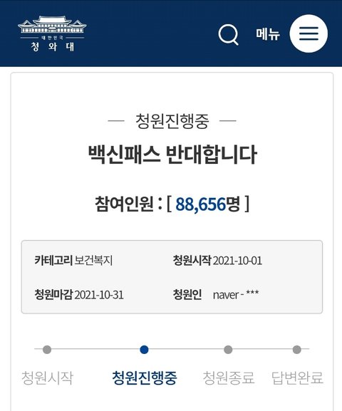 이건 백신패스 도입 반대 청원 링크와 그 내용이야