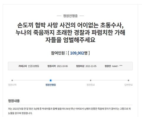 근데 기간이 11월 5일 오후? 까지여서요. (청원이 종료일 오후에는 없어지더라구요)