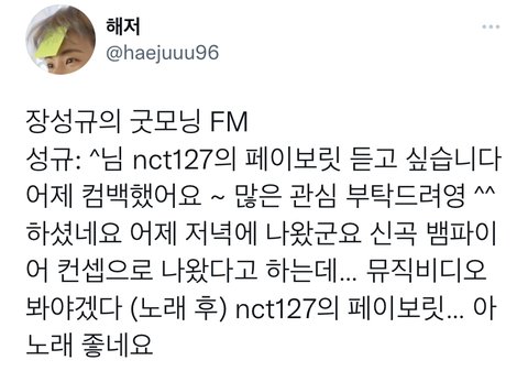ㅈㅅㄱ 굿모닝FM 노래 언급