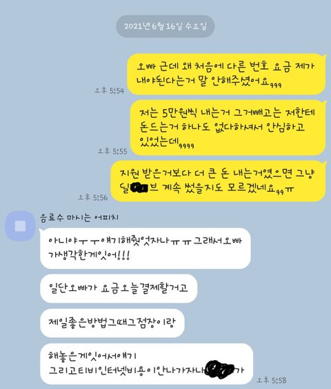 내가 거기에 폭발해서 처음하고 말이 다르지 않냐고 개따짐 돈 안든다고 했는데 내가 거기에 쏟아부은 쌩돈만 따로긁은 25만원 포함해서 70만원도 넘는다고 더이상 억울해서 못낸다고 화냄