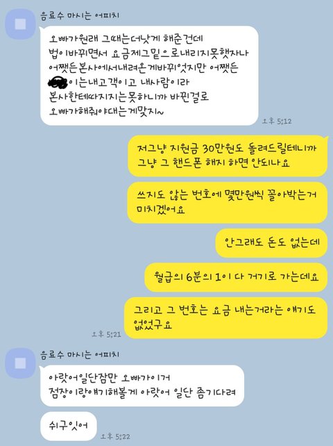 그땐 너무 정신없고 바빠서 일단 그렇게 하기로하고 번호 해지할때까지 그 폰요금 내가 냄ㅅㅂㅅㅂㅅㅂㅅㅂ