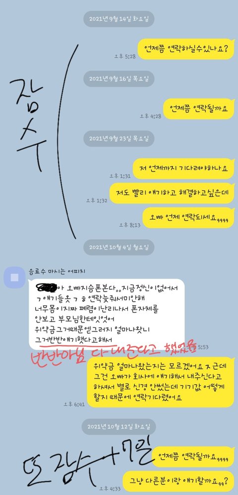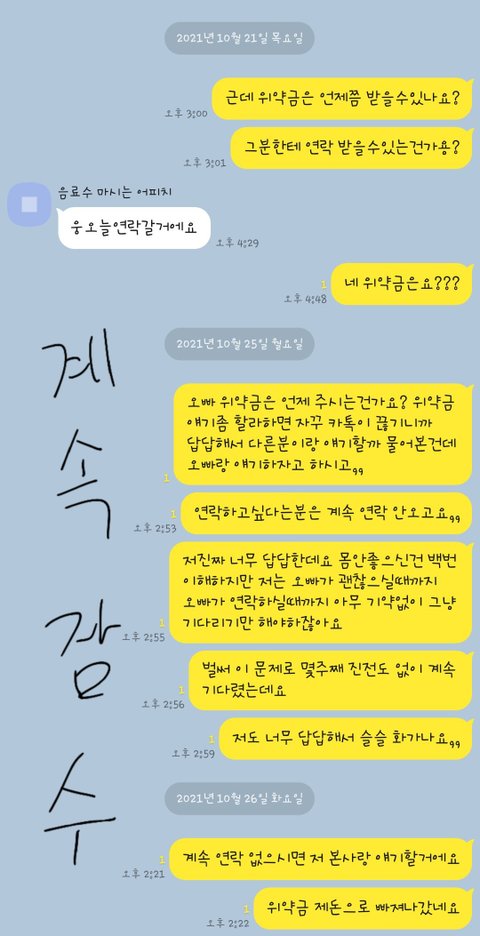 연락 잠깐 되서 위약금 얘기하면 또 잠수
