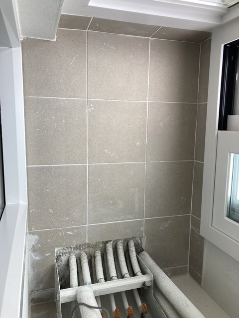 베란다타일: 탄성코트 묻어있고 전체적으로 하얗게 무언가 묻어있음