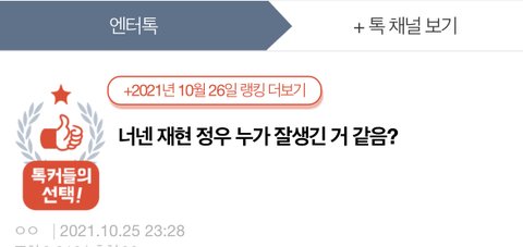 재툥 정툥은 쳐먹으면서 이간질글 맨날 올리고 외모비교글까지 톡선 조작하는 이유가 이제 비주얼 2등취급도 못받으니까 저러는건가? 베댓은 씹스러워서 안가져옴