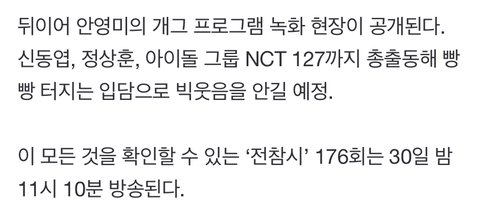 헐 울애들 ㅇㅇㅁ님 나올때 전참시 잠깐 나오나봄