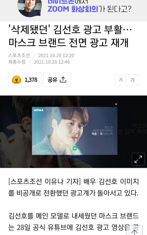 헐 김선호 광고 다시 올라옴