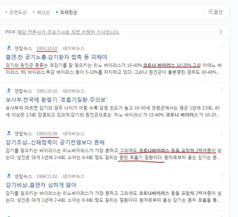 3. 애초에 코로나는 단순 감기바이러스 중 하나이다여태 인플루엔자 바이러스(독감)에 대한 백신은 존재하지만, 감기에는 백신이 존재하지 않는 이유. 간단함. 면역학자들에 의하면 감기바이러스는 불안정하여 '변이'가 잘 일어나기 때문에 백신을 만들 수가 없다는 논리. 코로나 바이러스는 과거 수십년간 인류와 함께있던 감기바이러스중 하나였고 매년 감기 환자의 약 10~15%가 코로나 바이러스에 의한 것이라는 내용이 실제 의대교과서에도 실려있다고 함(청주의 한 의사가 작성한 글로 확인된 내용) 과거 사스, 메르스 등도 감기바이러스의 변이종 중 하나임. 그때처럼 치명률이 높다면 경각심을 가져야 하지만 현재 유행하고 있는 COVID19는 위험하지 않은 일반적인 수준의 감기 바이러스라는 것. 실제로 아무 포털사이트에서 '코로나 바이러스' 검색 후 과거순으로 정렬하여 뉴스를 검색하면 예전부터 흔히 있던 바이러스라는게 확인됨. 최근 뉴스에서는 매일같이 전세계 코로나19 환자수를 집계하고, 사망자수를 집계하여 단체로 공포심을 조장하고 있는 상황. 재밌는 것은 작년에 '원인불명 폐렴'으로 죽은 사람이 지난 2년간 코로나로 인해 사망한 사람의 약 10배에 가까움. 매일 폐렴으로 병원을 찾는 사람의 숫자와 사망자 수를 집계하여 뉴스로 내보낸다면 사람들은 어떻게 반응할까?