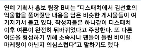 김선호 소속사가 여론을 바꾸려고 바이럴한 것도 아니고.. 그냥 한 사람이