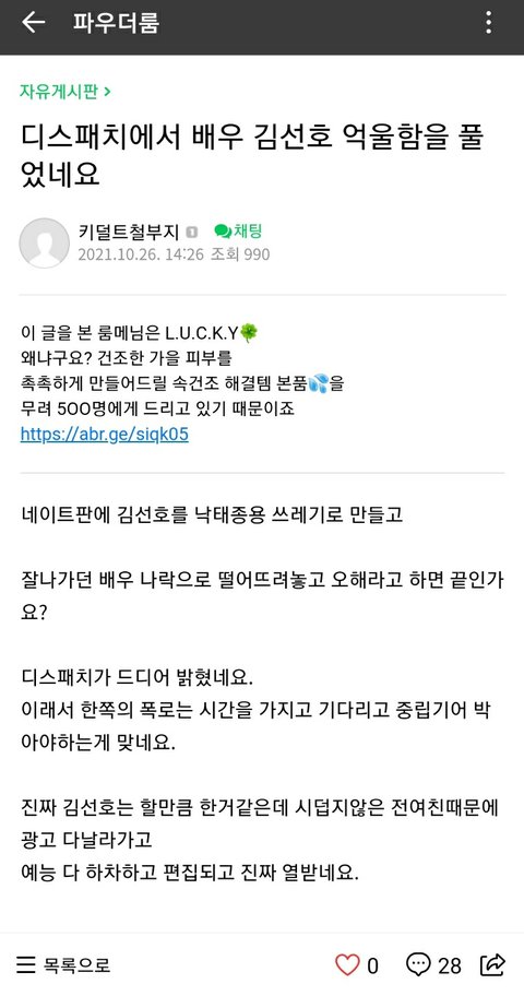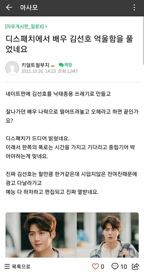 -> 김선호 소속사에서 바이럴을 했다라고 주장한 네이트판에 올라온 글은