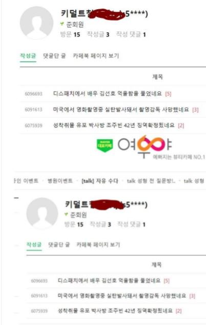 집단적으로 행동한 것도 아니고, 한 사람이 네이버카페에서 40개 글을 작성했다..?
