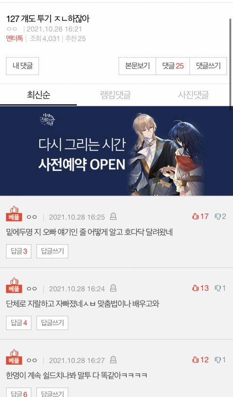 정신병자가 베댓조작으로 톡선 보낸거 박제