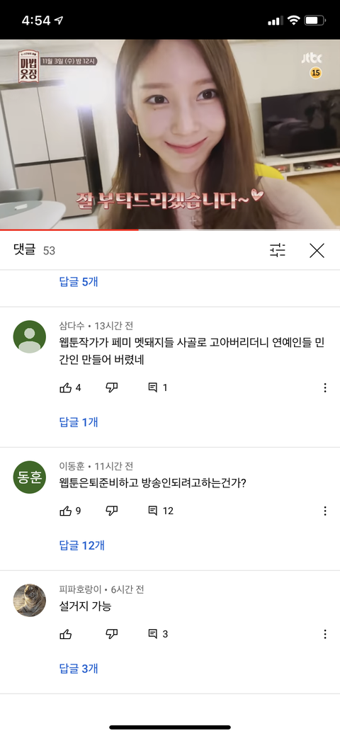 야옹이 작가 방송 나오는거 댓글 드럽다