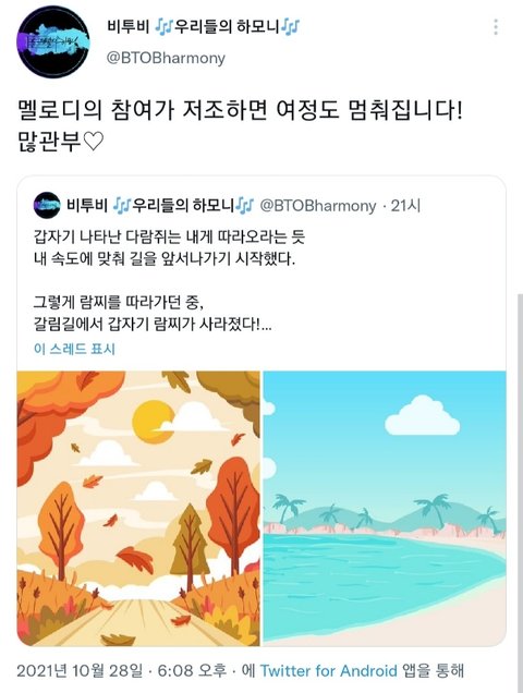 아직 투표 안한 멜로디들 가서 하기ㅎㅎ https://twitter.com/BTOBharmony/status/1453649925254701058?t=g33r_nDAAMbjnxokqM4rdQ&s=19