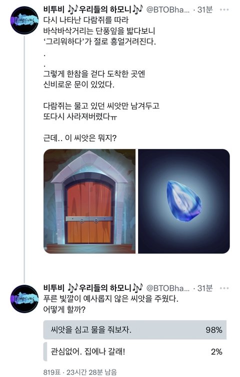 이번 투표는 여기! https://twitter.com/btobharmony/status/1453693175990681602?s=21