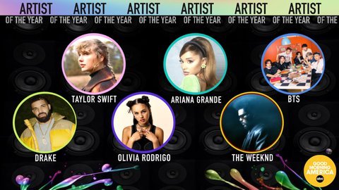 ama 올해의 아티스트상 후보인데 드레이크 테일러 올리비아 로드리고 아리아나 위켄드 그리고 방탄