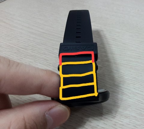 2. 시계줄을 저 고무밴드에 넣어줘!!