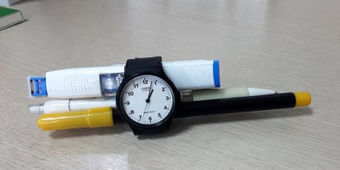 수험장 책상 위에 올려놓으면 보기에도 편하고 이렇게 필기구들껴서 보관하기도 좋아!! (테이프로 고정시키면 더 굳굳)