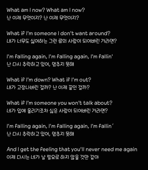 <falling 가사 해석 일부>