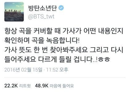 매년 정국이는 커버곡을 선물하는데 부를때 항상 가사가 어떤 내용인지 먼저 확인하면서 곡을 녹음한다고 해 !!