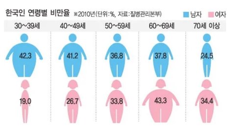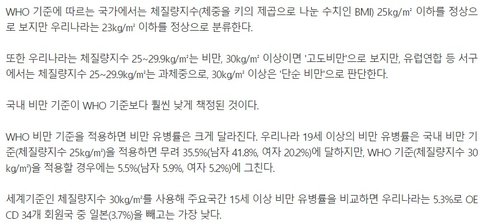 WHO 비만 기준이랑 달라서 우리나라만 유독 비만인구가 많은 것처럼 나옴