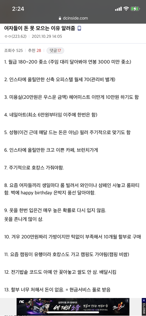 20대때 개처럼 쓰지 말고 돈좀 모으라고 좀 ㅋㅋ