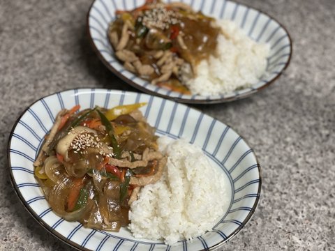 넙적당면으로 만든 잡채밥